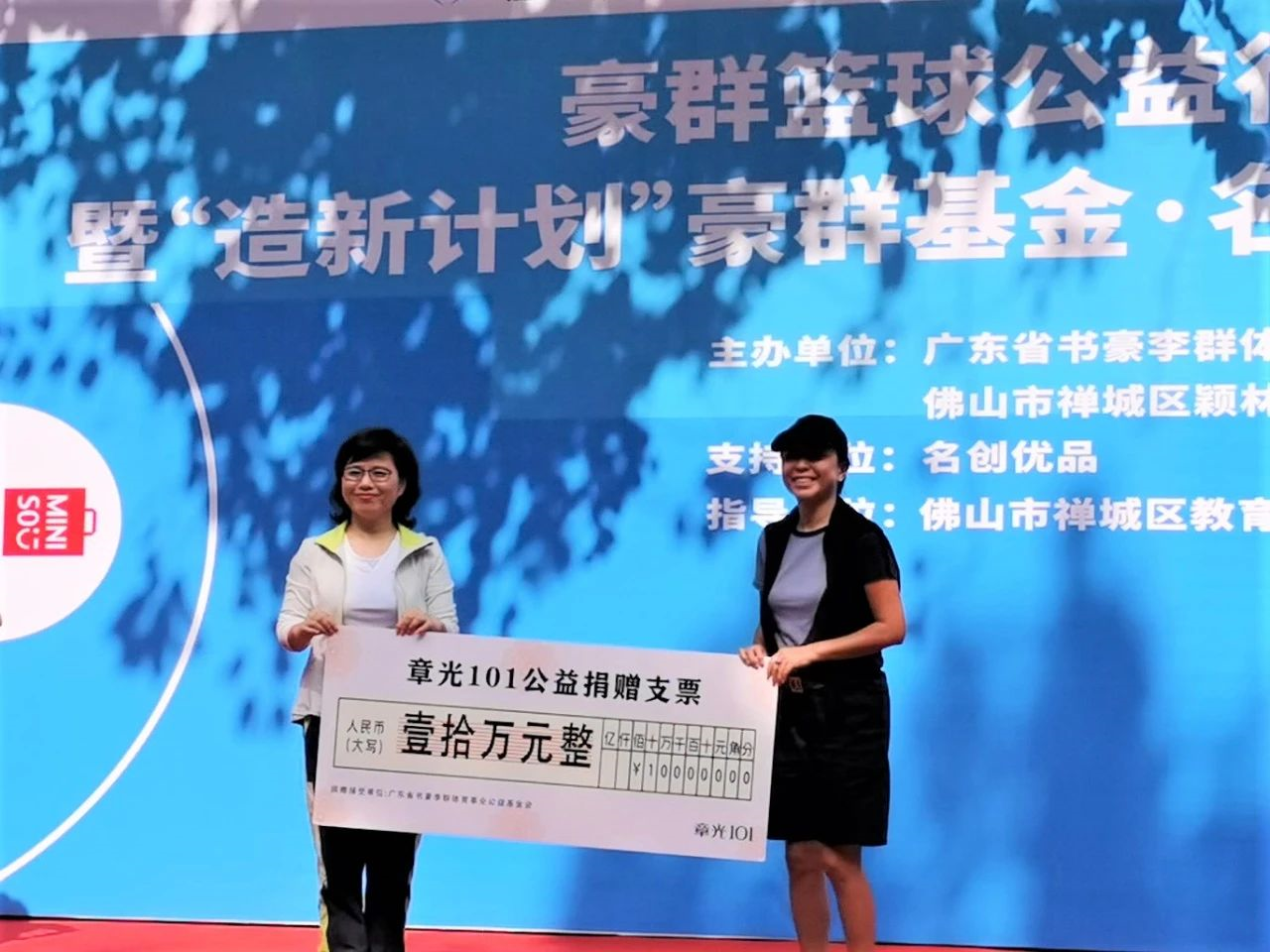 豪群公益基金会关注乡村体育发展的行动,吸引了一大批优秀企业共同关注和参与。广州章光101有限责任公司就是其中的一家。在落成仪式上,章光101积极践行公益,向豪群公益基金会捐赠10万元,用于乡村学校球场的改造。